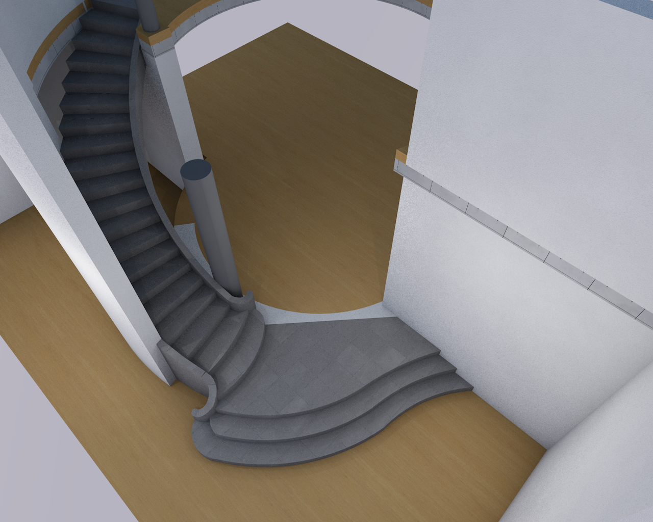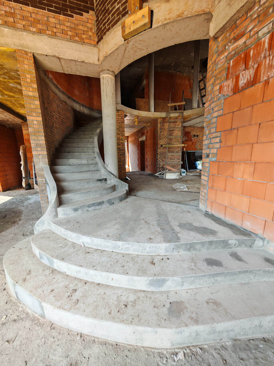 Сама лестница получилась замечательно: красивая и функциональная, с удобным заходом на неё со всех сторон. Учли и минимальный просвет между ступенями и вышележащей балкой. Для этого правда пришлось снести часть существующего перекрытия, но разве это важно, когда делаешь конструкцию на века!